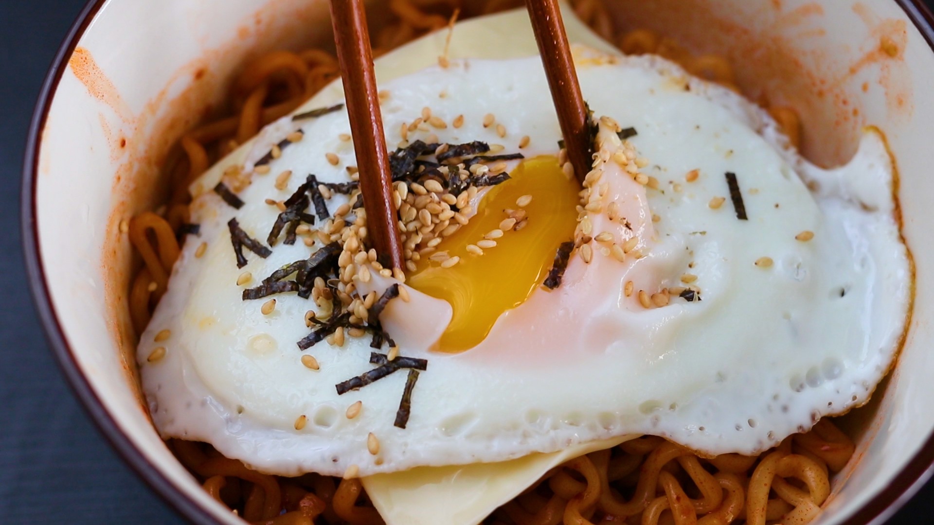 火鸡面的吃法有很多种,这里为大家介绍最常见的一种吃法:1、用小锅热水把面饼煮软,2、捞起面条倒入辣酱搅拌均匀,3、煎一只溏心荷包蛋,4、在面条上放一片芝士,再放上溏心荷包蛋,撒上芝麻海苔即可。