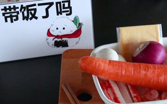 米饭|鸡蛋|洋葱|蘑菇|豌豆|红萝卜|午餐肉|虾仁|蟹棒|马苏里拉芝士|黄油|蛋黄酱|千岛酱