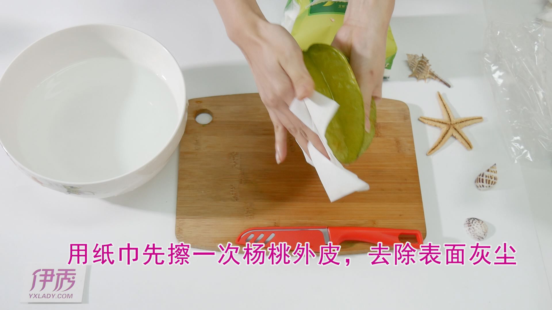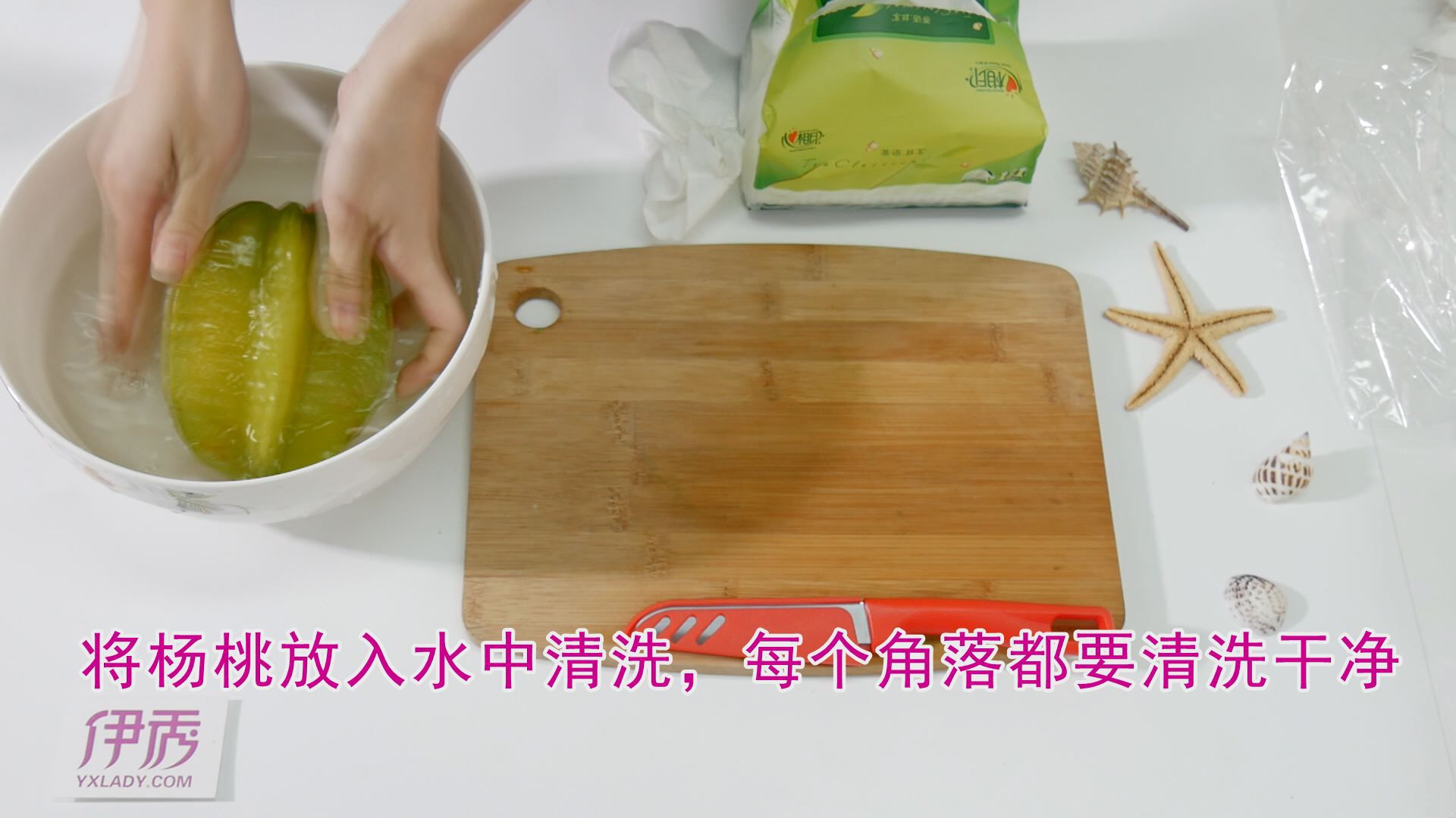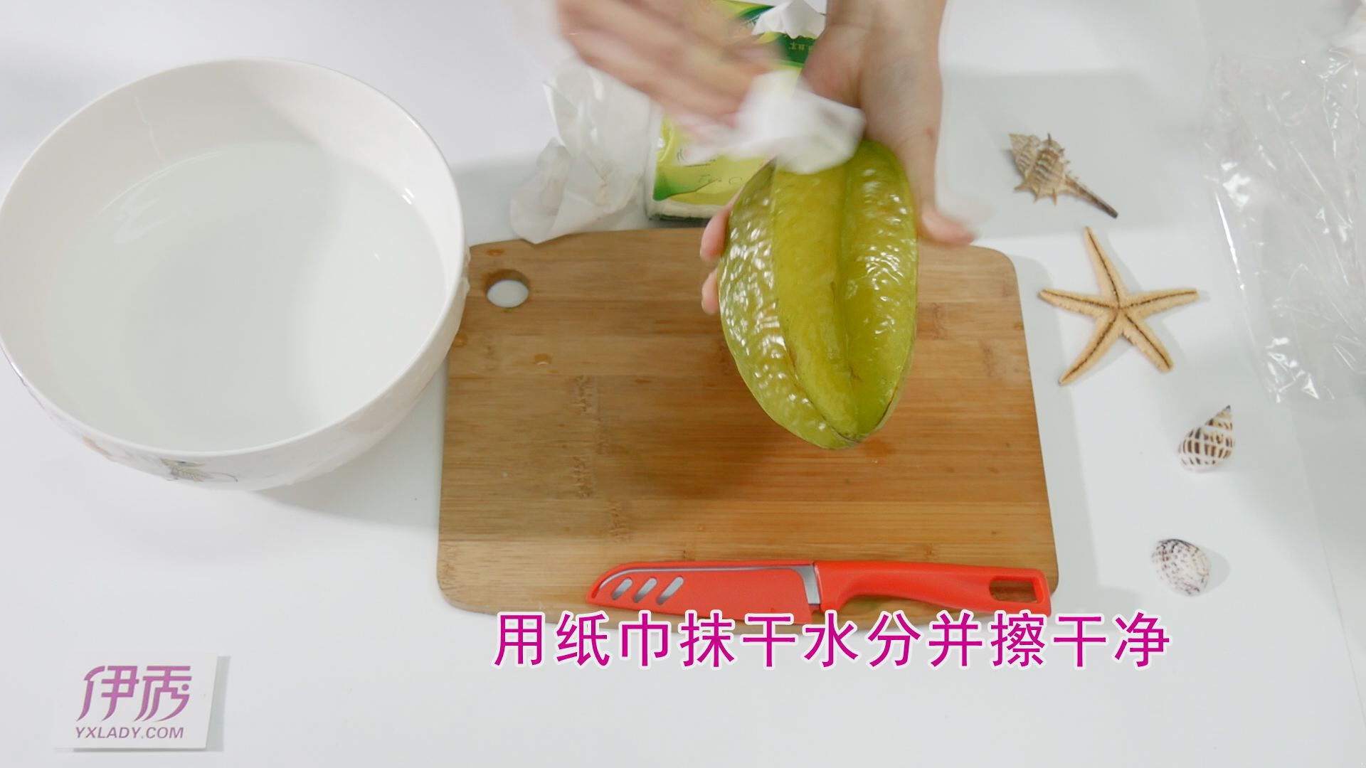 用纸巾先擦一次杨桃外皮,去除表面灰尘