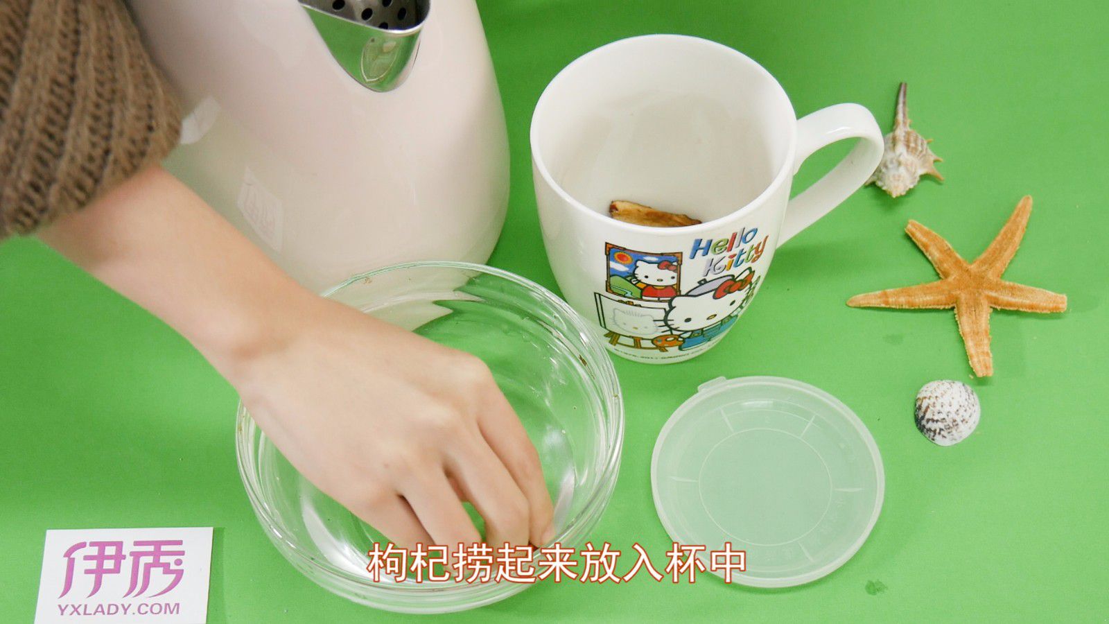 枸杞捞起来放入杯中。