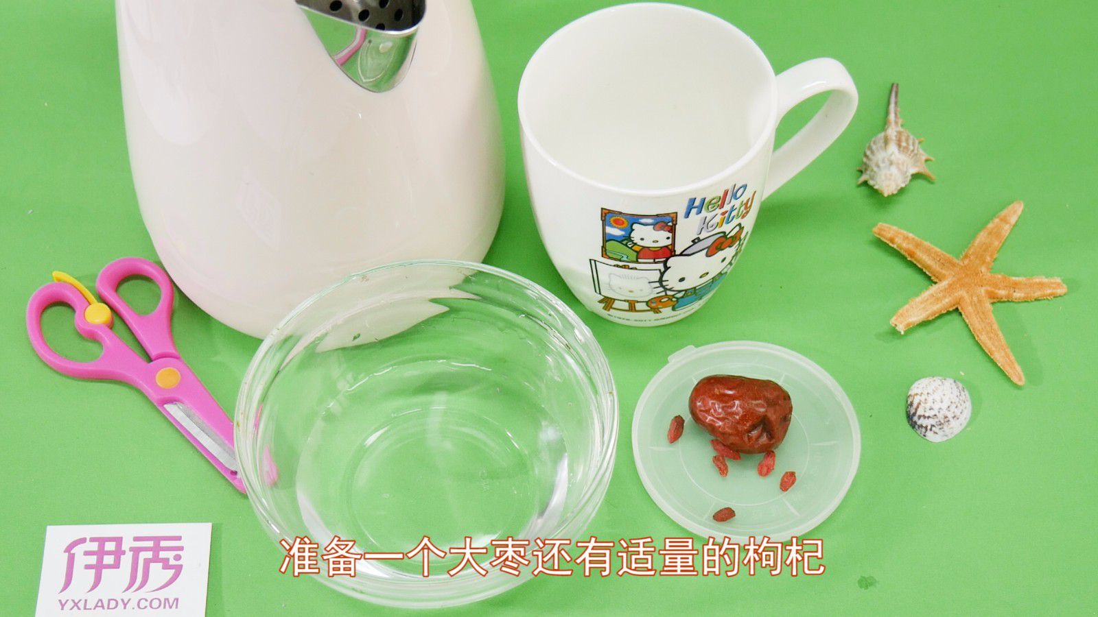 准备一个大枣和适量的枸杞。