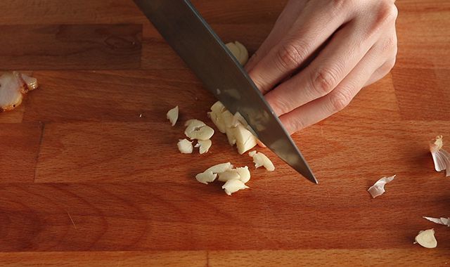 蒜头切粒。